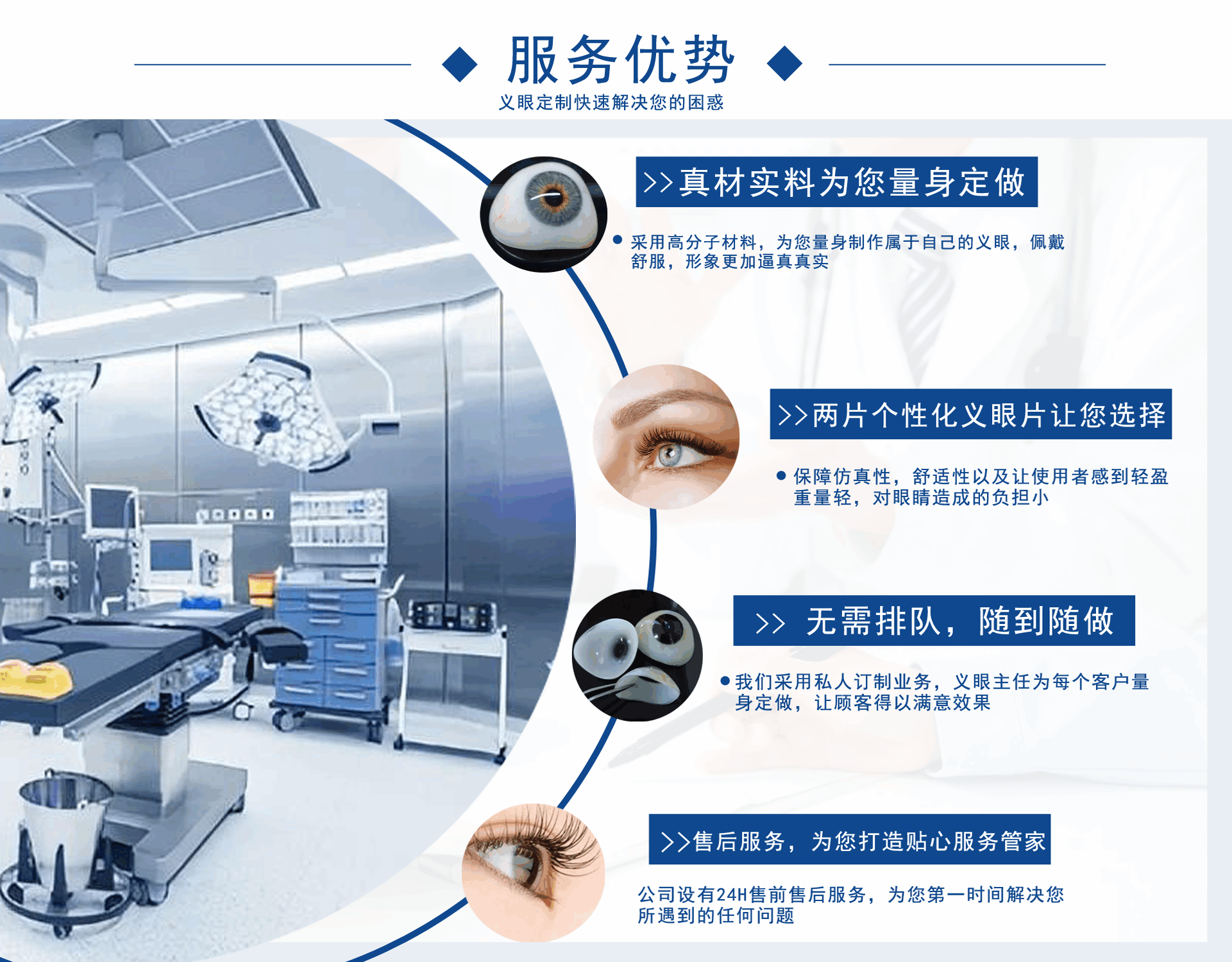 正目醫(yī)療科技有限公司致力于為用戶提供假眼,在哪里可以定制義眼,義眼哪家好,假眼價格,義眼價格,義眼費用,義眼公司,是集義眼定制、保養(yǎng)、咨詢?yōu)橐惑w的綜合性義眼定制企業(yè)?! —殑?chuàng)的義眼工藝結構,根據仿生物學原理,采用進口醫(yī)用植入材料:高分子材料、無毒素、性能穩(wěn)定、堅固耐用)、聚甲基丙乙烯阝-羥乙酯HEMA材料(軟性親水性材料),結合獨特的義眼個性化佩戴技術,按佩戴者健眼的形態(tài)、角膜、虹膜、及瞳孔的大小、色澤、血管紋理和脂肪分布,設計制作。擁有超薄、質輕、光滑、親水透氧、佩戴舒適和高逼真的特點。為保證佩戴效...